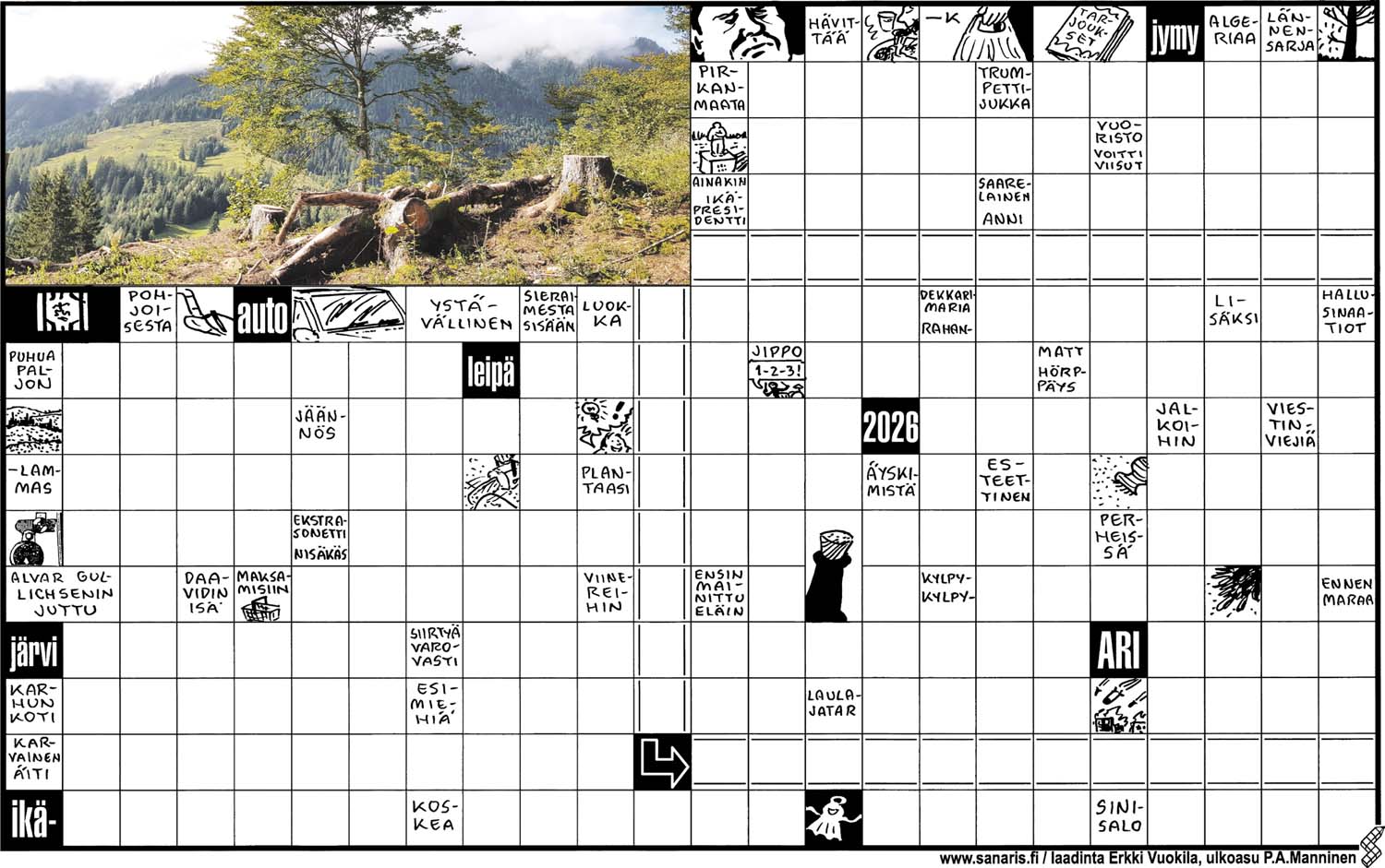 Metsälehti 17/25Tyyppi: kryptoVaikeustaso: helppo/kesk. Laatija: Erkki Vuokila Piirtäjä: Erkki Vuokila |